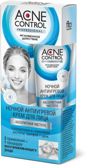 - Крем Acne Control для дневного и ночного использования. Дневной крем устраняет жирный блеск, а ночной очищает кожу от угрей.
