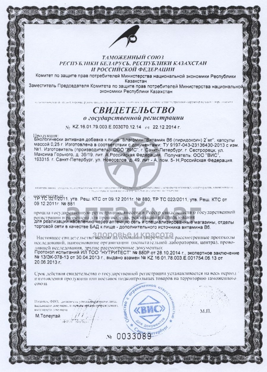 «Благомин» Витамин В6 (пиридоксин) рекомендуется в качестве биологически активной добавки к пище – дополнительного источника витамина В6.