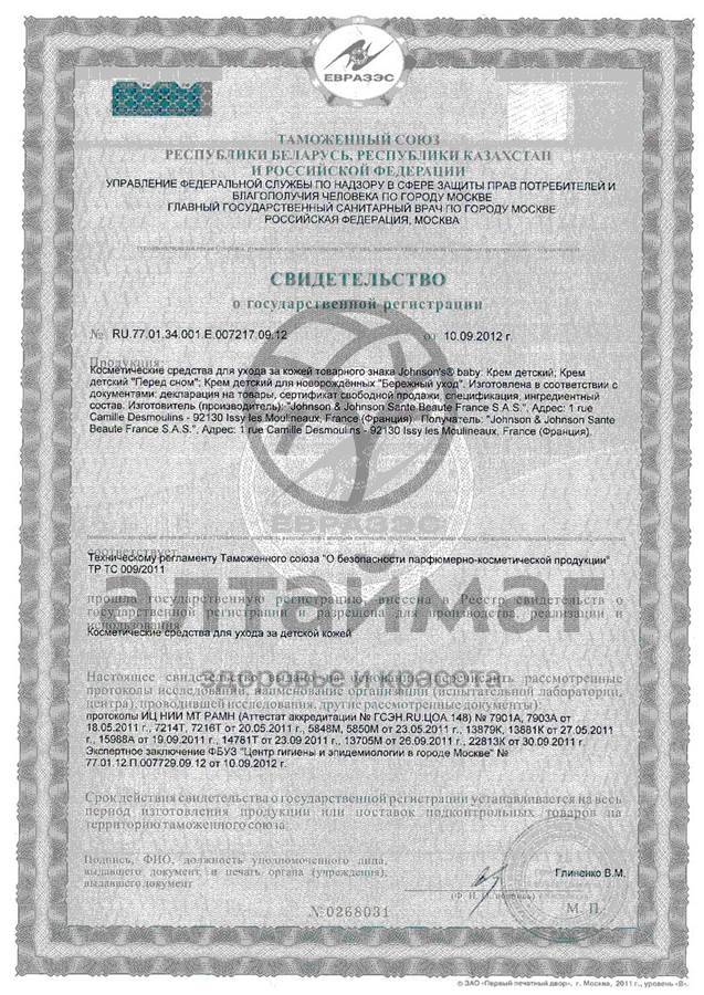 Меры предосторожности при применении Крема под подгузник Johnson's® Baby