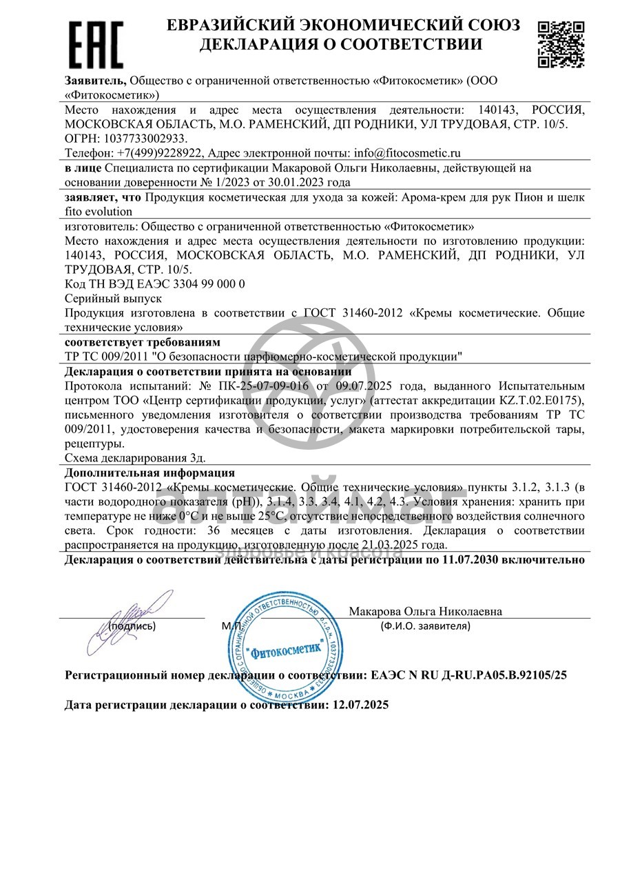 - Купите Крем-арома для рук Пион и шелк Fito Evolution 75мл в Сочи по доступной цене 107 ₽ с доставкой на дом или заберите Ваш заказ в Сочи из ближайшего пункта выдачи, сделав заказ на AltaiMag.ru.