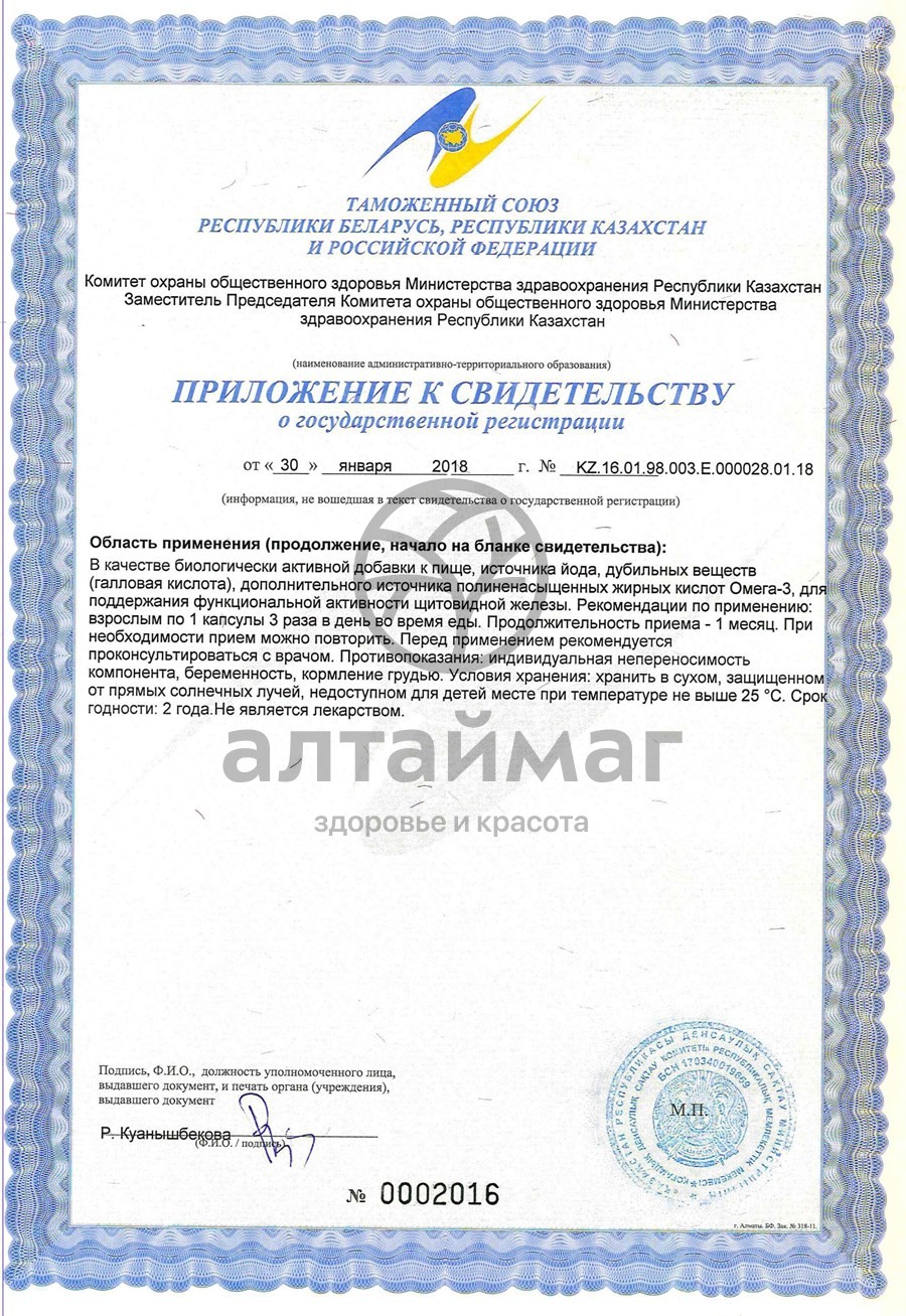 Состав: БиОмегАктив, экстракт ламинарии, экстракт грецкого ореха, экстракт фукуса.