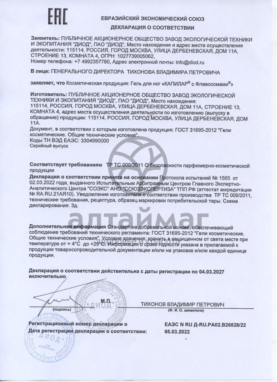Гель для ног КАПИЛАР с Флавосомами применяется как профилактическое средство при склонности к варикозам, отекам, болям в ногах. Особо рекомендуется тем, кто по роду профессиональной деятельности имеет постоянную нагрузку на ноги.