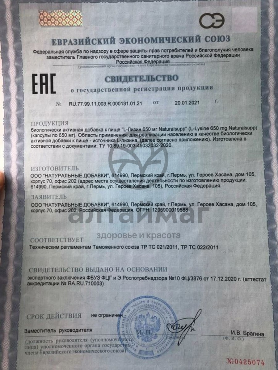 - Купите L-лизин 650мг Naturalsupp №60 в Сочи по доступной цене 404 ₽ с доставкой на дом или заберите Ваш заказ в Сочи из ближайшего пункта выдачи, сделав заказ на AltaiMag.ru.
